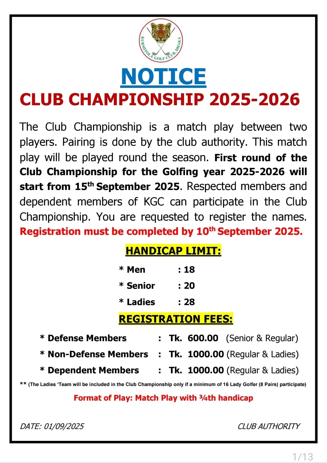 Registration for Club Championship 2025-26 is open till 10 Sep 2025.